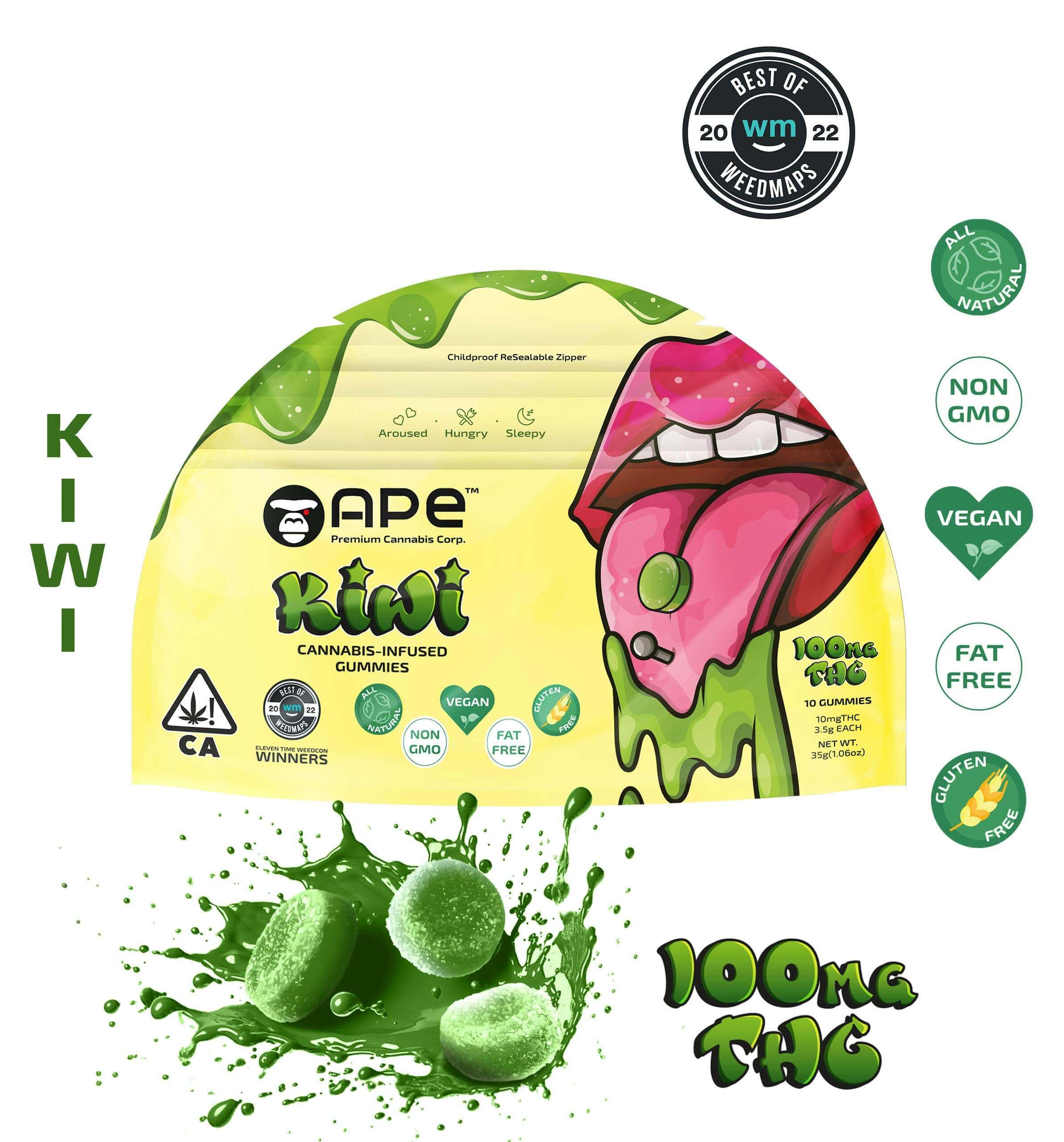 Kiwi Edibles — 100MG THC Gummies (NET WT 35g | 3.5g each)