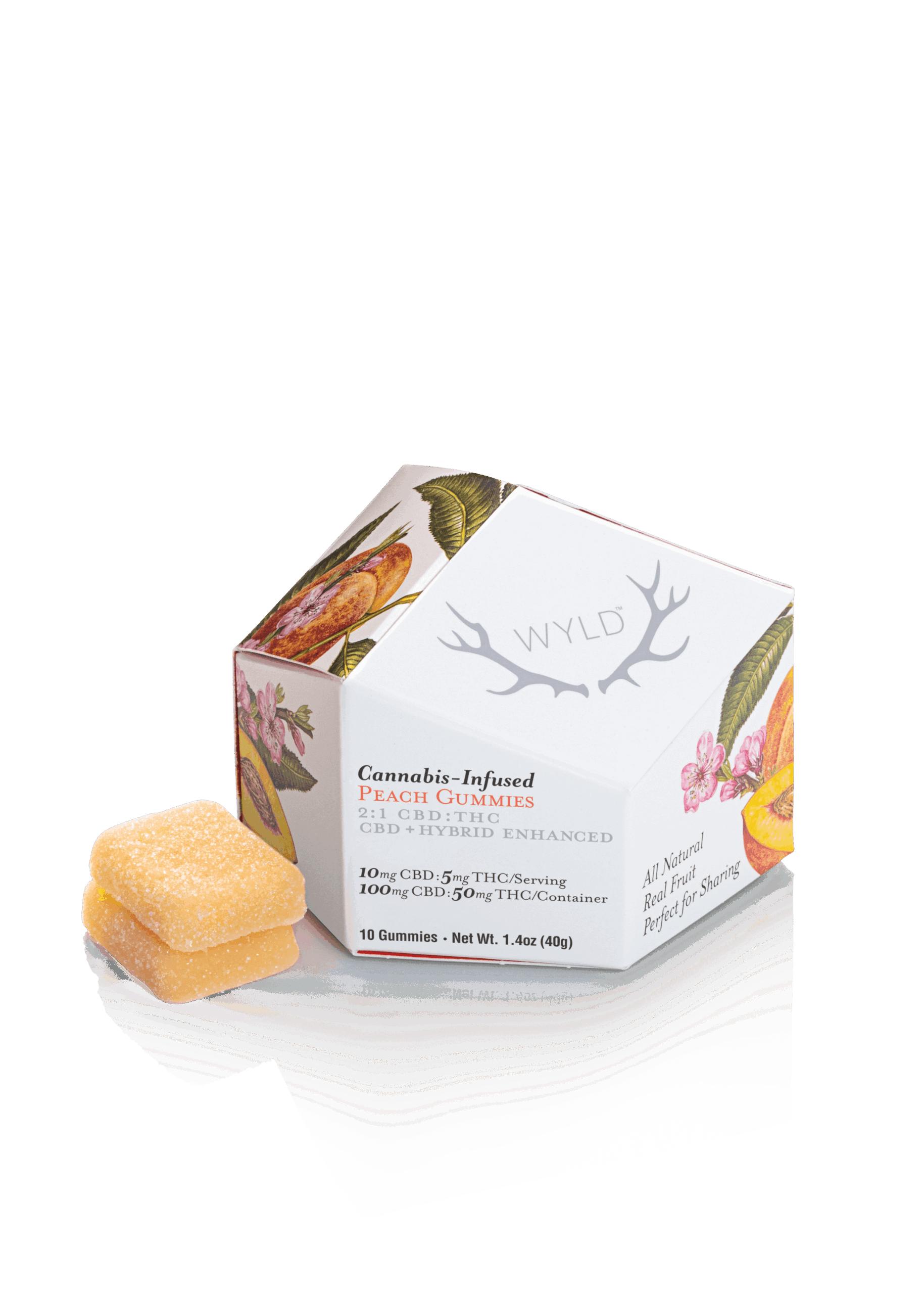 New to edibles? Our Peach 2:1 CBD:THC gummies are made with more CBD than THC, making them a great option for easing into edibles. They are made with real fruit and enhanced with a balanced Hybrid terpene profile that may assist in creating a sense of ease and overall well being.